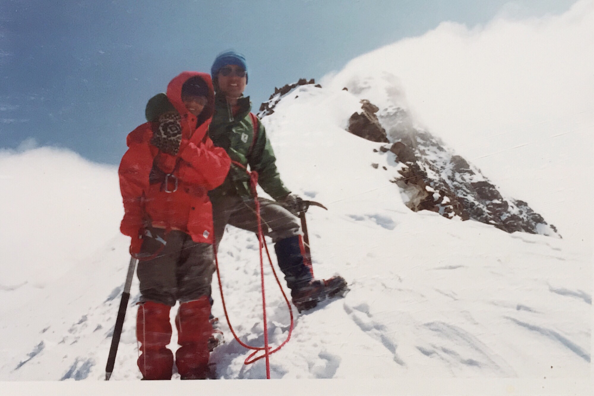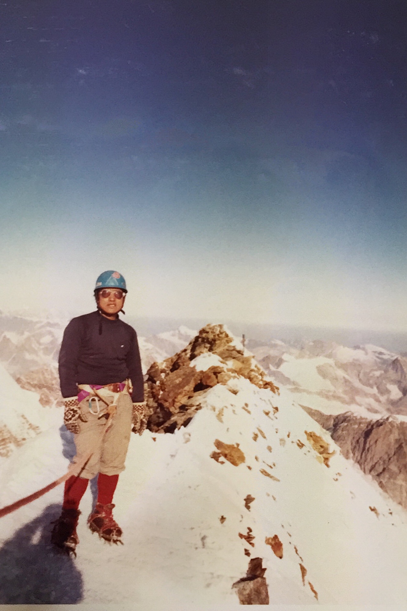 山頂までは慎重に歩を進めたが、天候に恵まれ、風も穏やかで、美しい稜線歩きを心から堪能できた。モンブランでは悔しい思いをした妻も、このときの表情は晴れやかで、山頂で見せた笑顔は今も写真の中で輝いている。