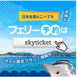 全国フェリー予約なら【スカイチケットフェリー】|最安値比較で簡単予約全国フェリー予約【スカイチケットフェリー】は、株式会社アドベンチャーが運営する旅行予約サイト「スカイチケット」が提供するフェリー専門予約サービスです。日本全国のフェリー航路...
